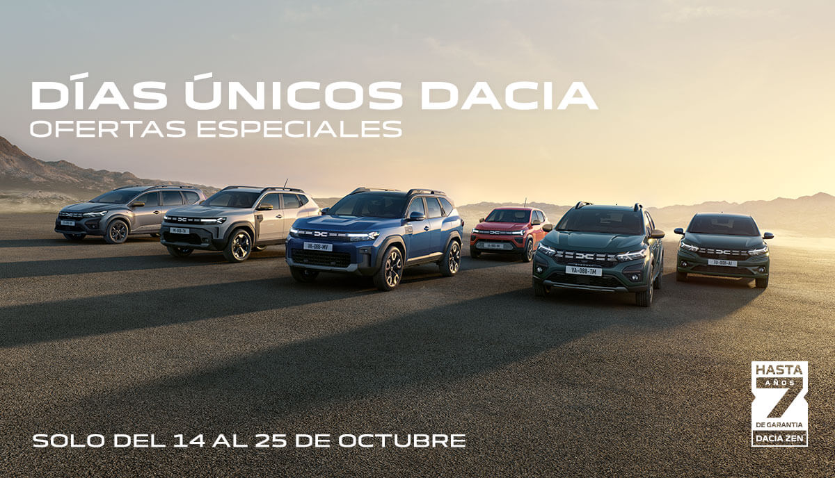 Disfruta de nuestras OFERTAS ESPECIALES* en toda la gama del 14 al 25 de octubre en tu concesionario más cercano y reserva ya tu Dacia con hasta 7 años de garantía**.